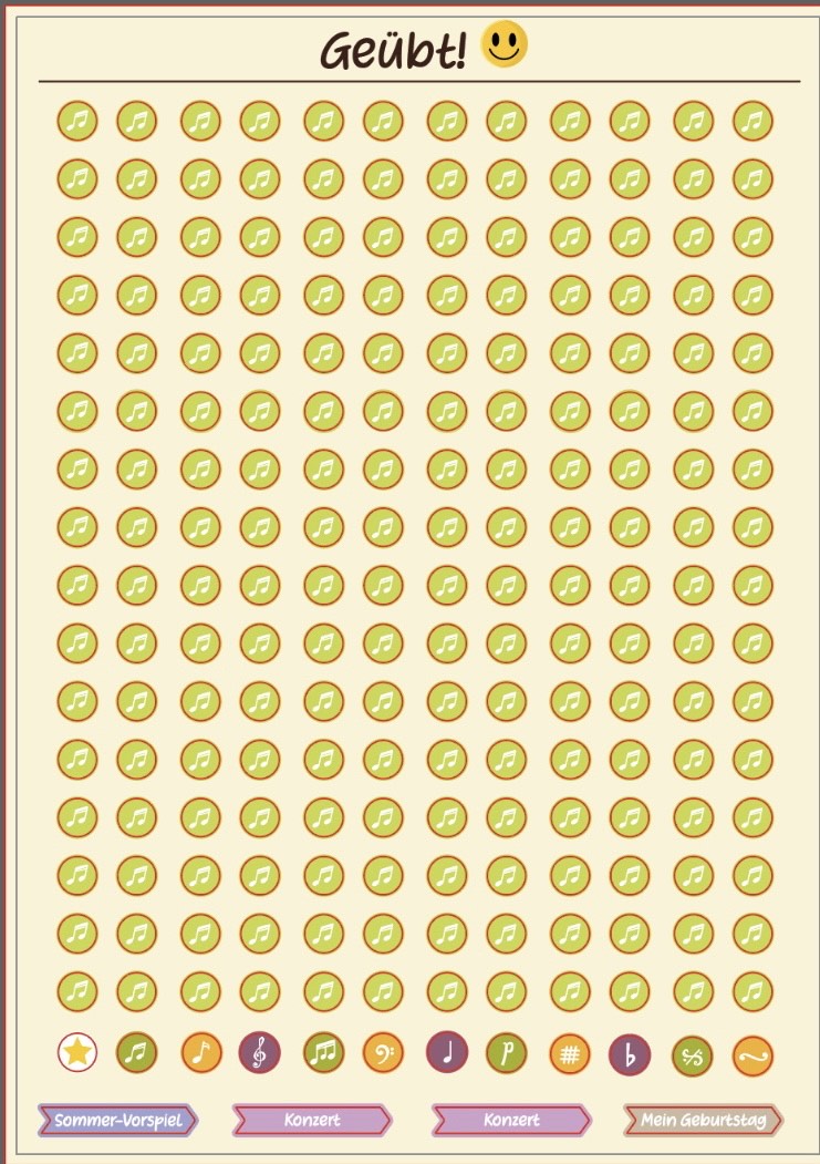 **Grüner Sticker** : Ich habe geübt!