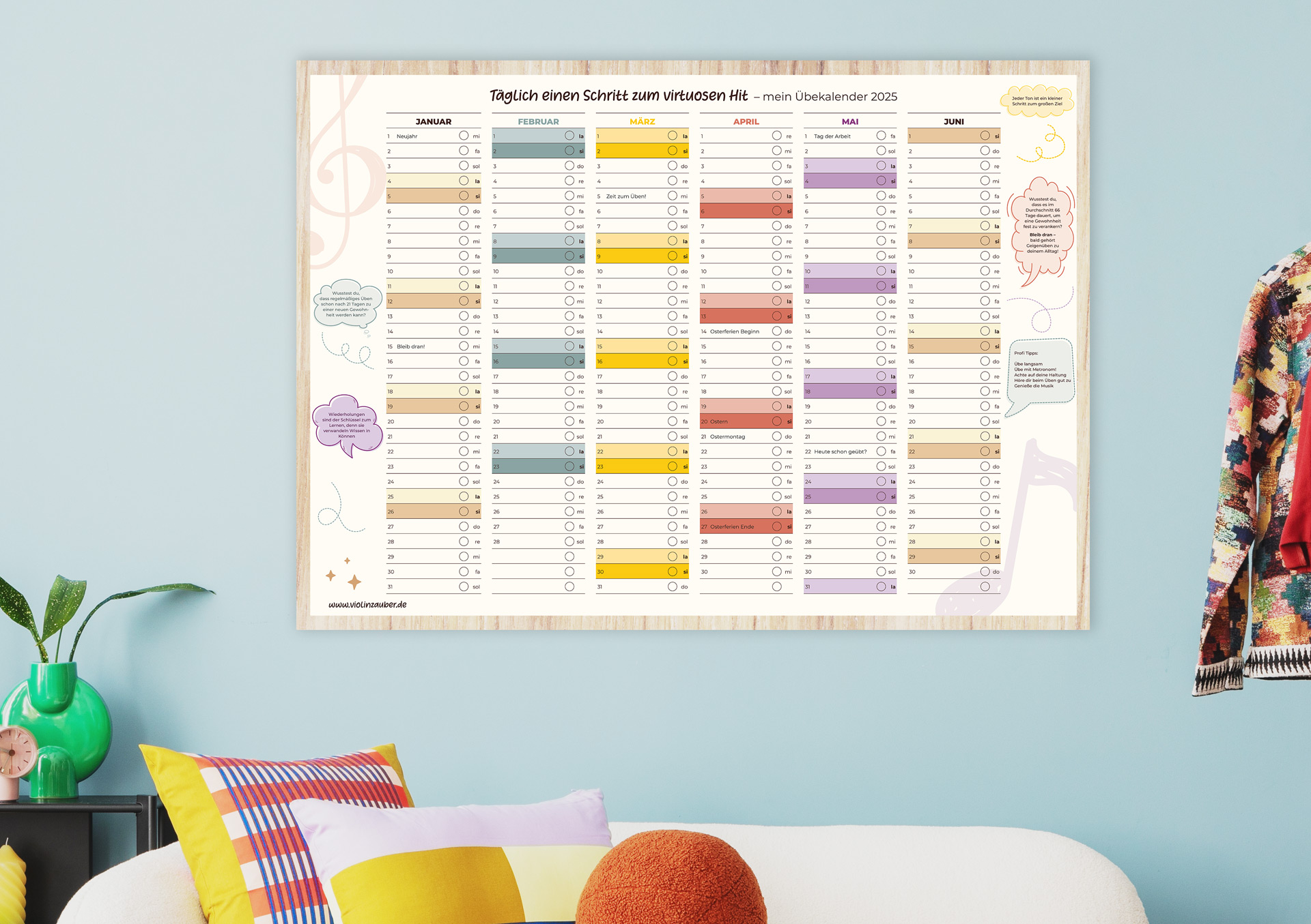Mit dem Geigenkalender wird das tägliche Üben zum motivierenden Erlebnis!